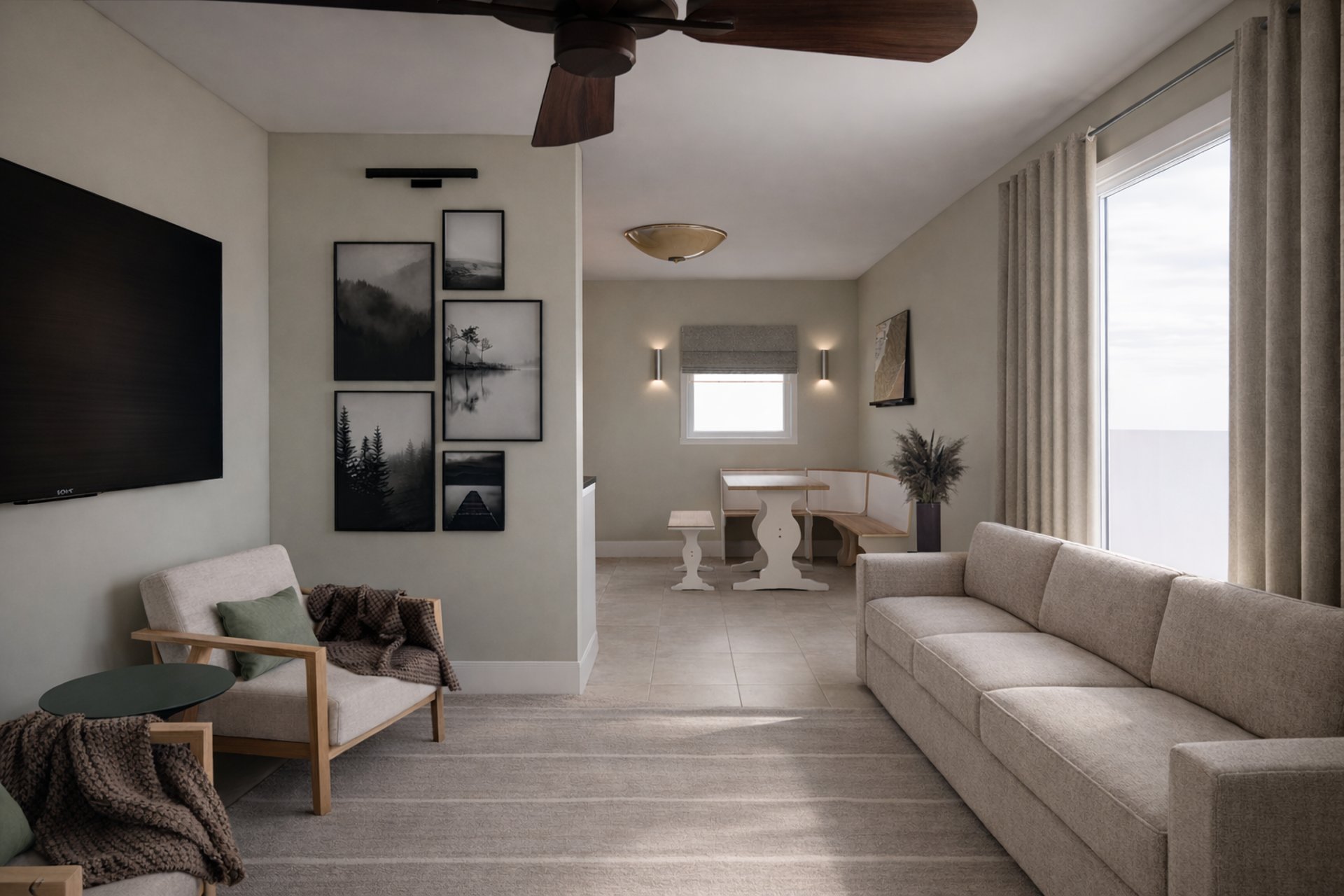 We design inviting, guest-ready spaces that balance comfort, durability, and visual impact. Our vacation rental styling services are tailored to elevate your property’s experience, strengthen your brand, and increase booking potential—while maintaining a cohesive, high-end aesthetic.